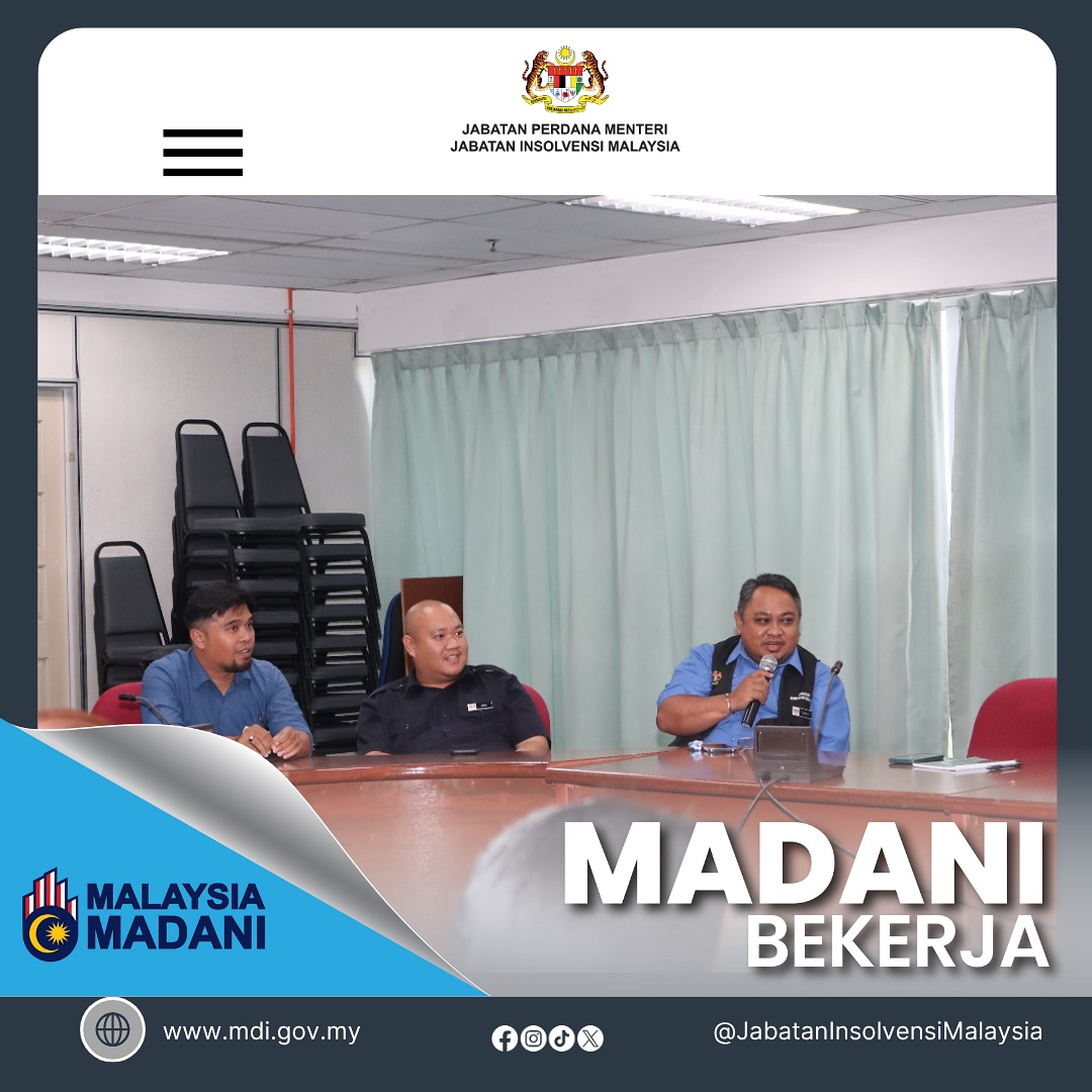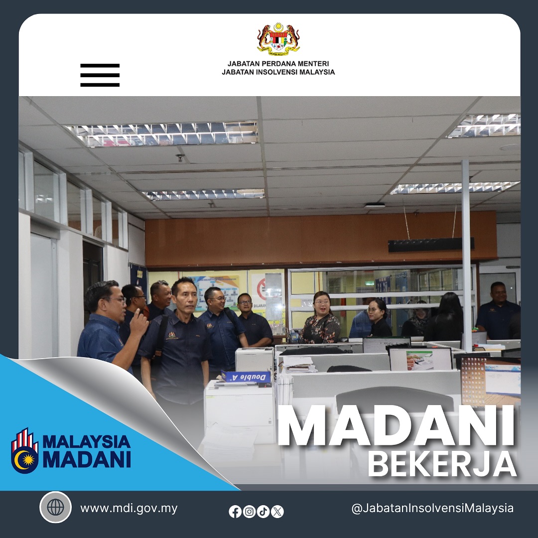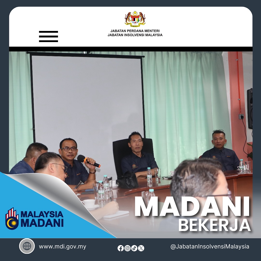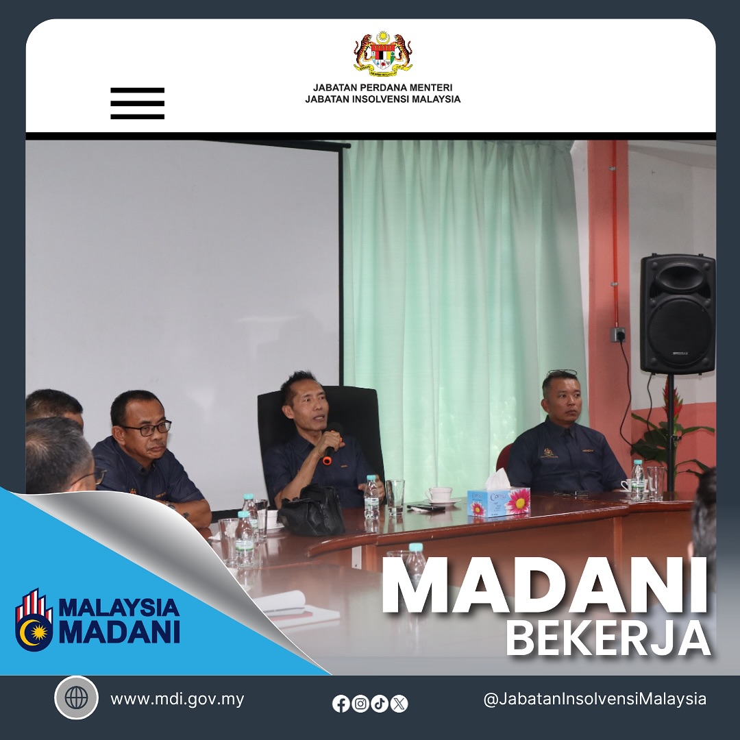 YBhg. Dato’ Ishak bin Bakri, Ketua Pengarah Insolvensi Malaysia telah mengadakan lawatan kerja rasmi sulung ke MdI Cawangan Sibu, menjadikan ini sebagai kunjungan kerja pertama beliau ke peringkat cawangan sejak dilantik sebagai Ketua Pengarah pada 9 Jun 2025.