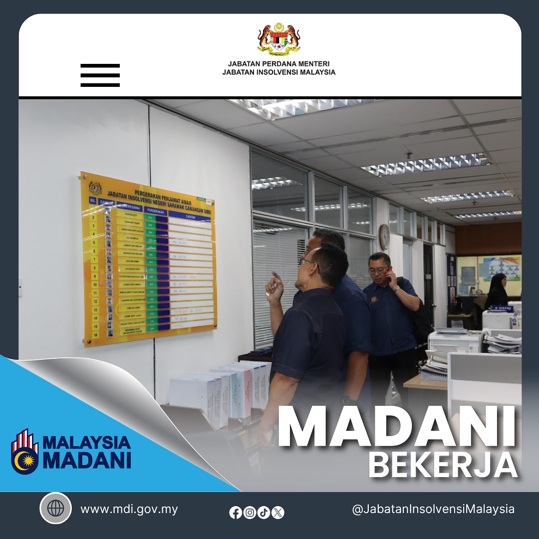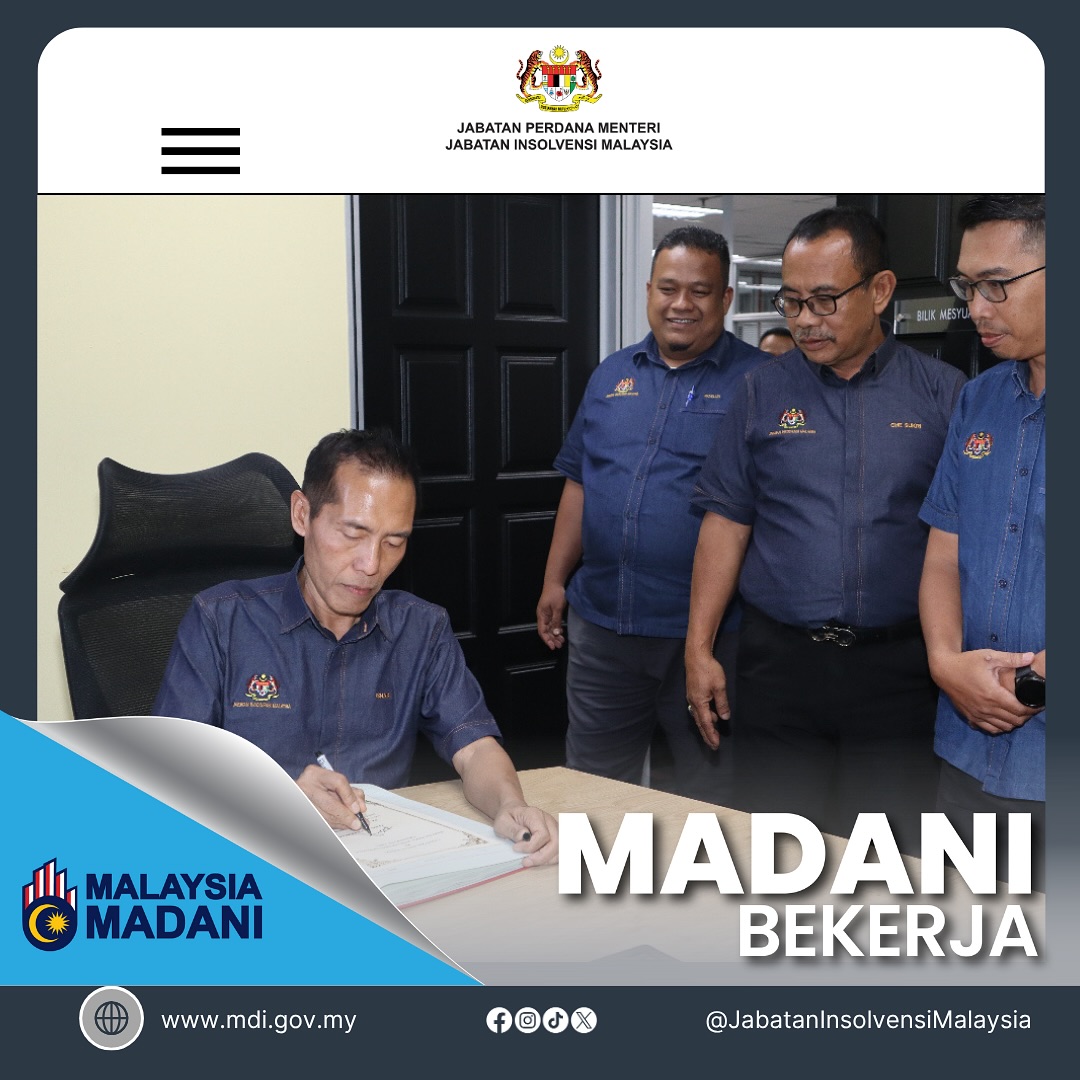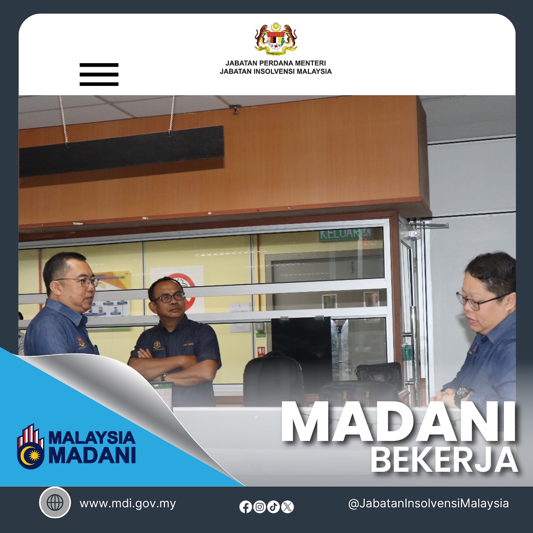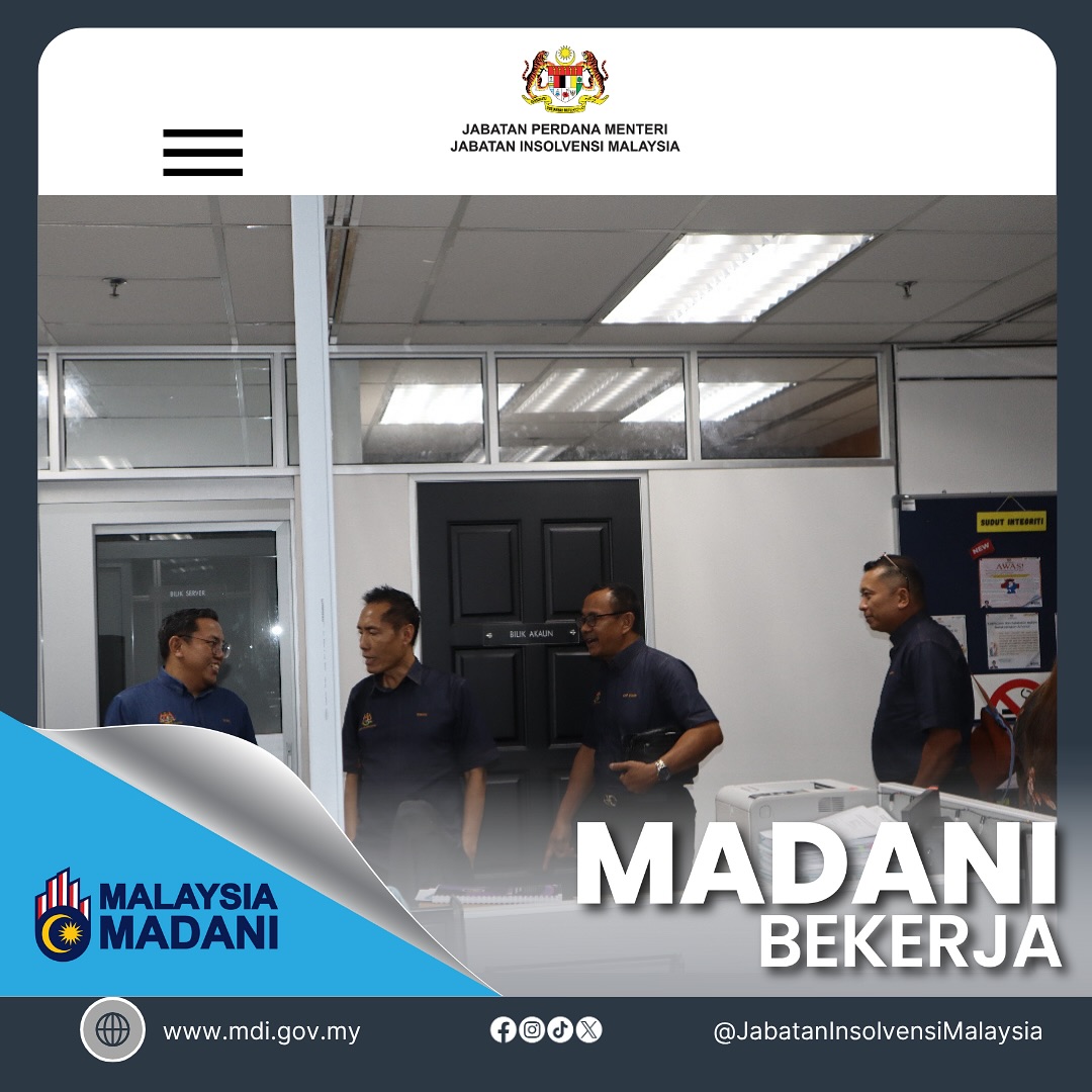 YBhg. Dato’ Ishak bin Bakri, Ketua Pengarah Insolvensi Malaysia telah mengadakan lawatan kerja rasmi sulung ke MdI Cawangan Sibu, menjadikan ini sebagai kunjungan kerja pertama beliau ke peringkat cawangan sejak dilantik sebagai Ketua Pengarah pada 9 Jun 2025.