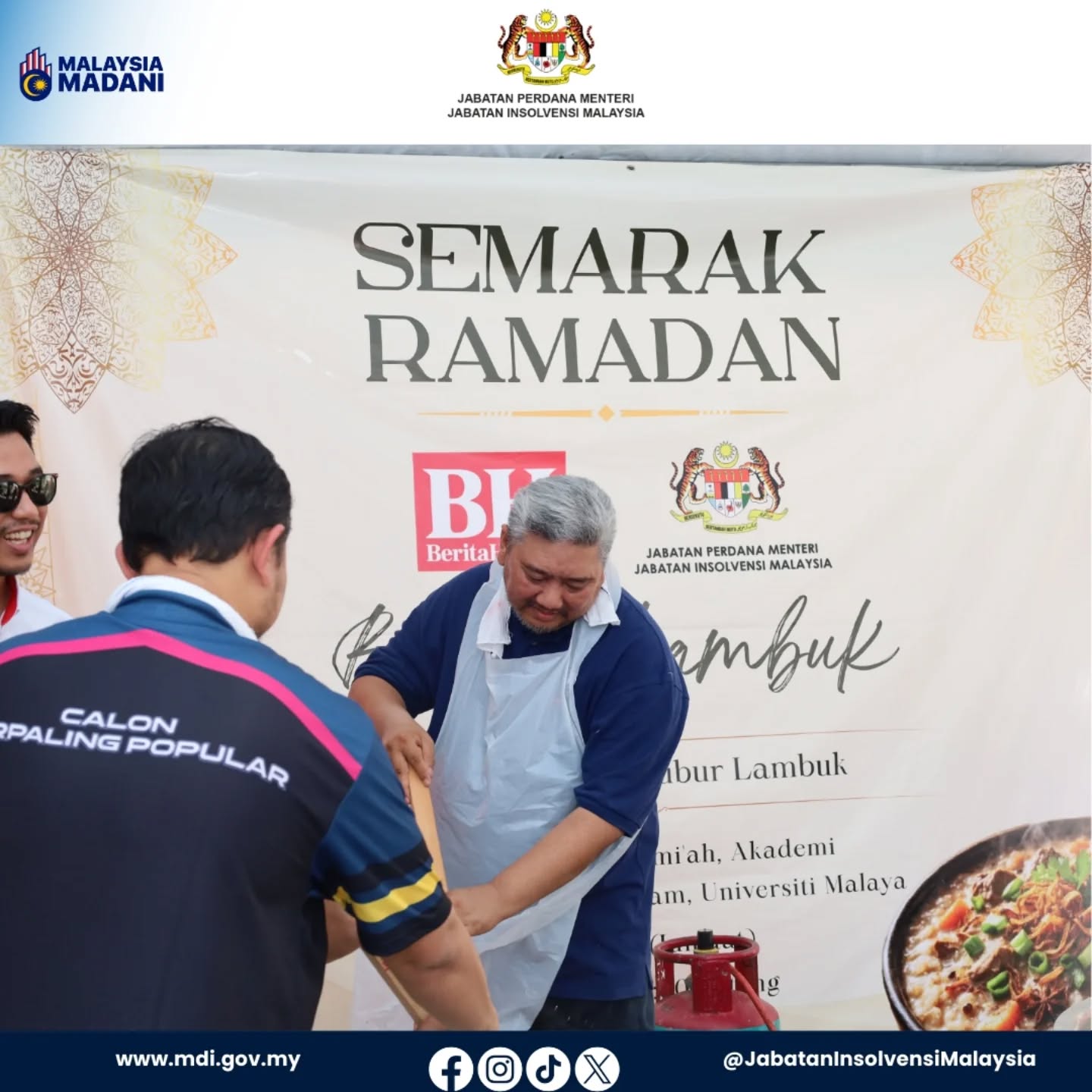 13 Mac 2026-Program Semarak Ramadan anjuran Berita Harian (BH) dengan kerjasama Jabatan Insolvensi Malaysia (MdI) berjaya mendekatkan masyarakat dan komuniti Universiti Malaya (UM) melalui agihan bubur lambuk di Surau Al-Jami’ah, Akademi Pengajian Islam, Universiti Malaya, hari ini.
