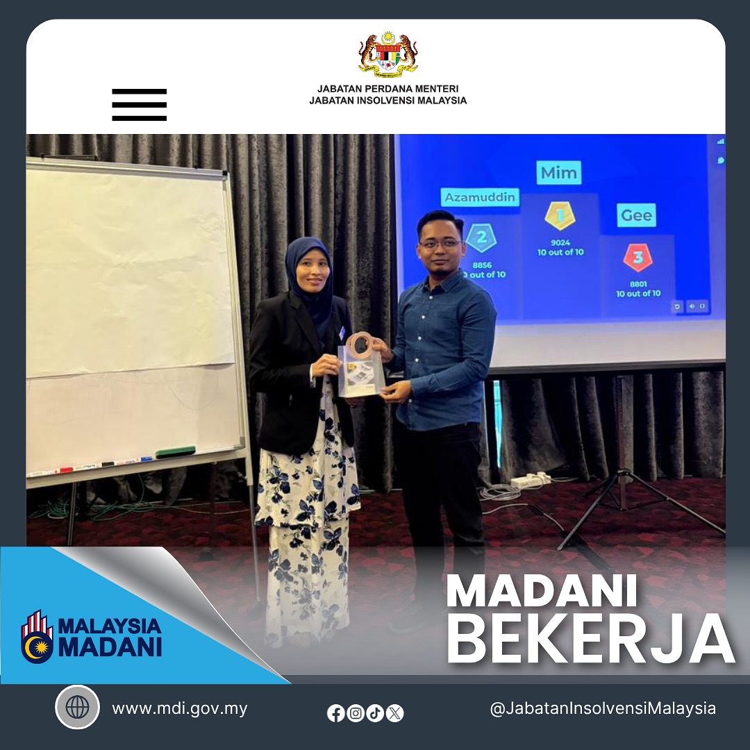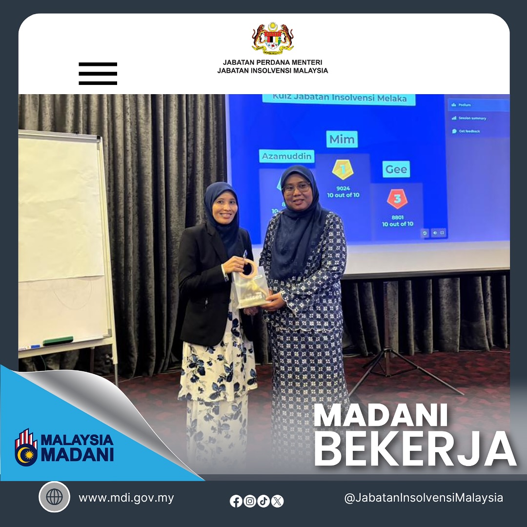 14 Julai 2025 | Jabatan Insolvensi Negeri Melaka telah dijemput untuk menyampaikan taklimat bertajuk “Kesan dan Akibat Kebankrapan serta Pemfailan Tuntutan Bukti Hutang” sempena Program Taklimat Kaedah-Kaedah Pemungutan Cukai Tahun 2025 anjuran LHDN Johor yang berlangsung di Hotel Swiss Garden, Melaka.