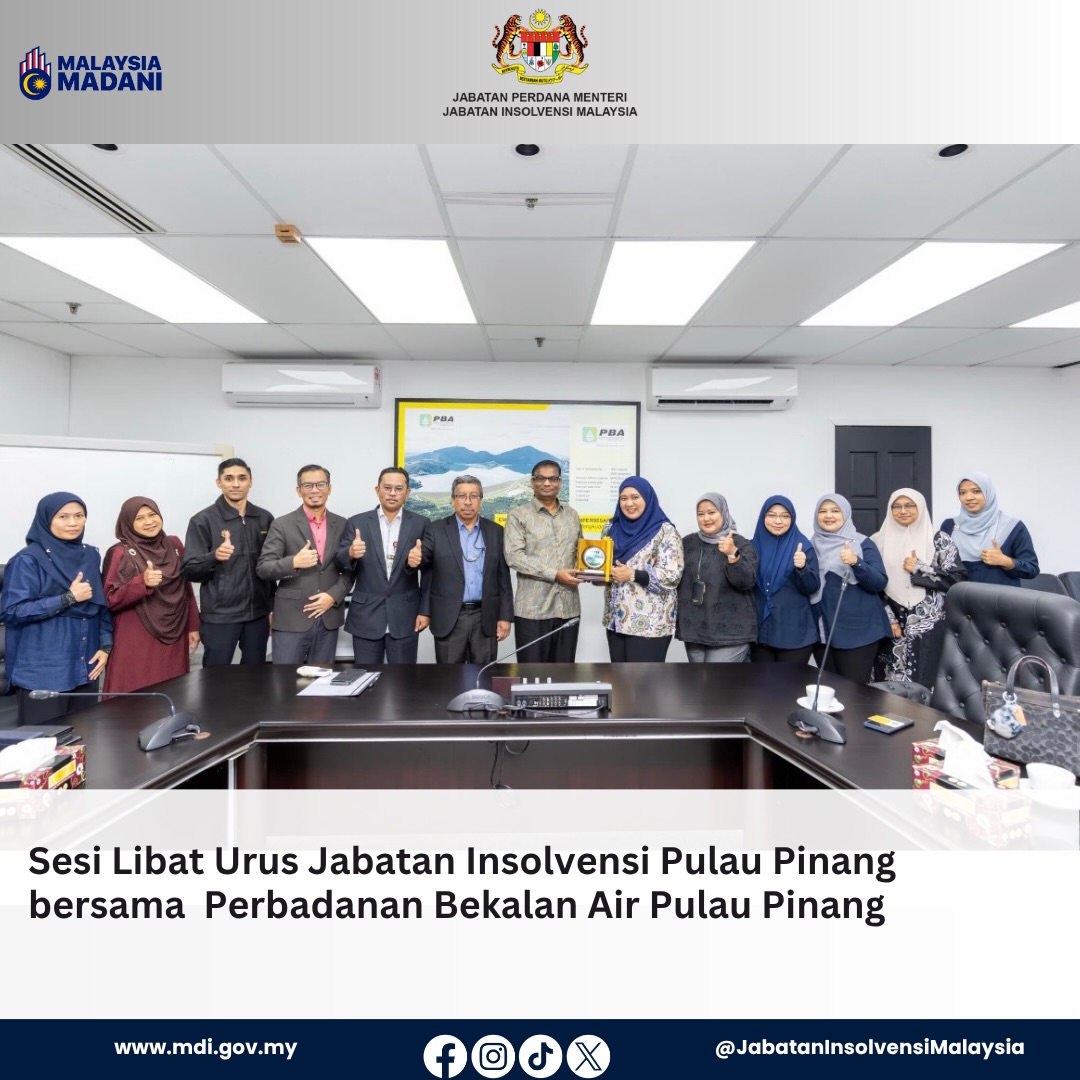 Jabatan Insolvensi Malaysia (MdI) Pulau Pinang telah mengadakan satu sesi libat urus bersama pihak Perbadanan Bekalan Air Pulau Pinang (PBA) pada 15 April 2026.