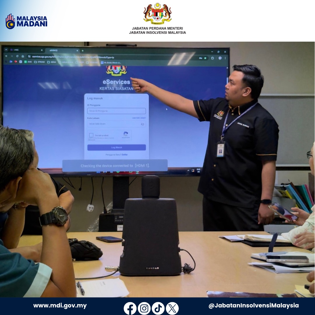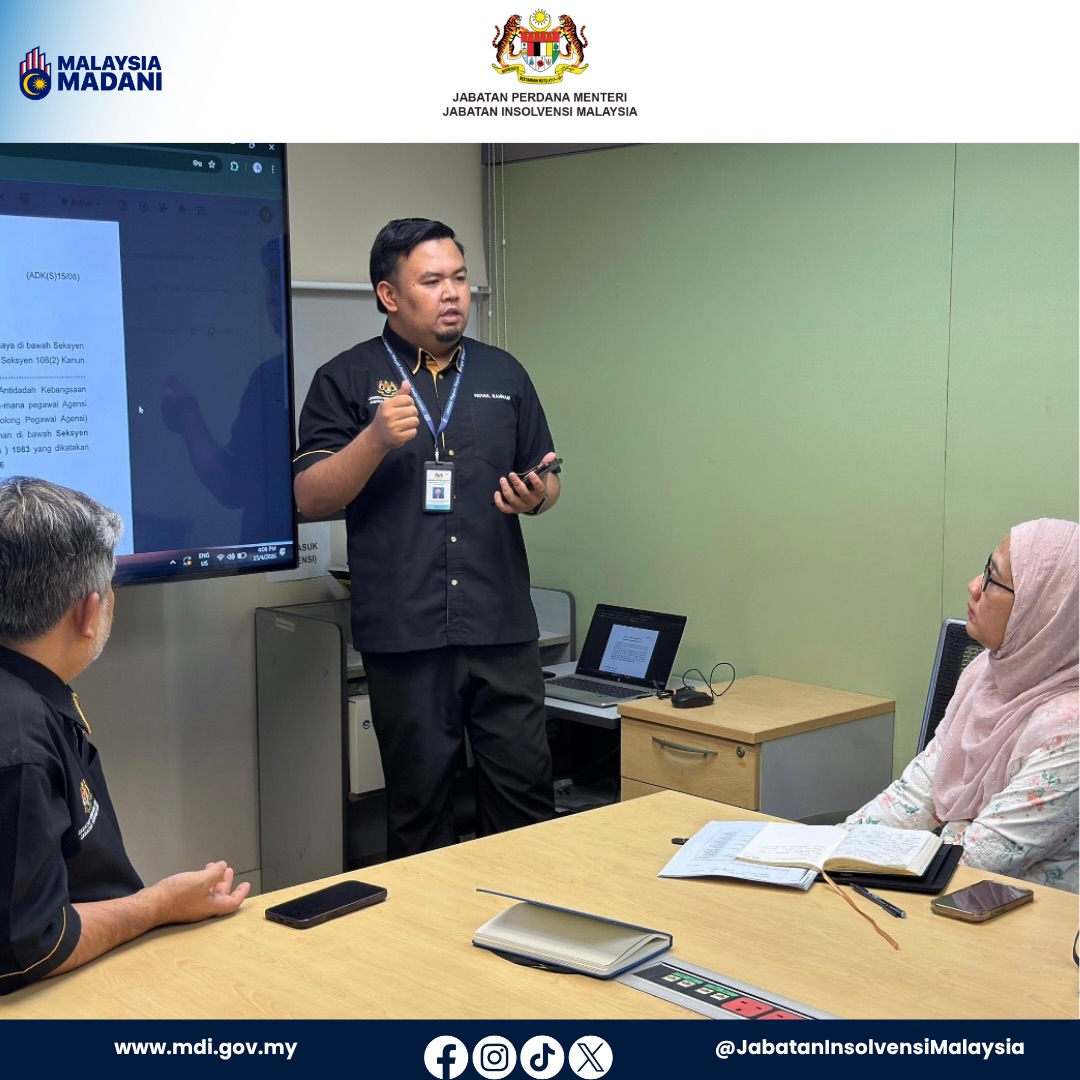 Satu sesi perbincangan kolaboratif antara Jabatan Insolvensi Malaysia (MdI) Cawangan Kuala Lumpur dan Unit Pendakwaan AGC Kuala Lumpur telah berlangsung pada 15 April 2026.