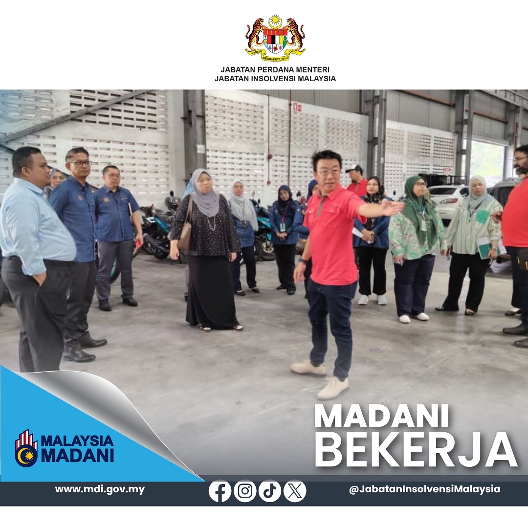 Petaling Jaya, 16 Julai 2025 – Jabatan Insolvensi Malaysia (MdI) telah mengadakan lawatan kerja ke stor penyimpanan kenderaan milik syarikat pelelong terbesar di Malaysia, Pickles Asia Sdn. Bhd., yang terletak di Petaling Jaya, Selangor. Lawatan ini telah disantuni oleh Encik Ernest Wong, Pengurus Besar Pickles Asia Sdn. Bhd., bersama wakil syarikat.