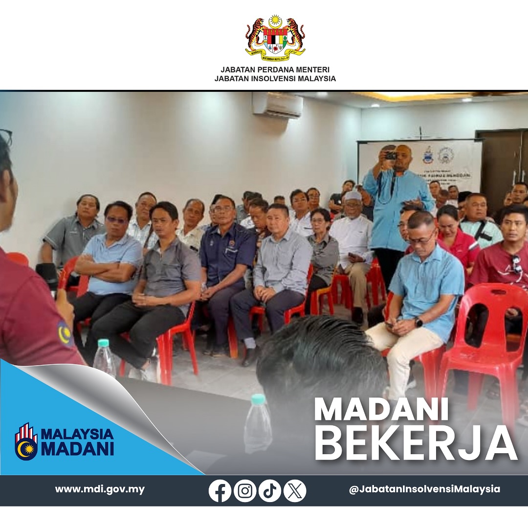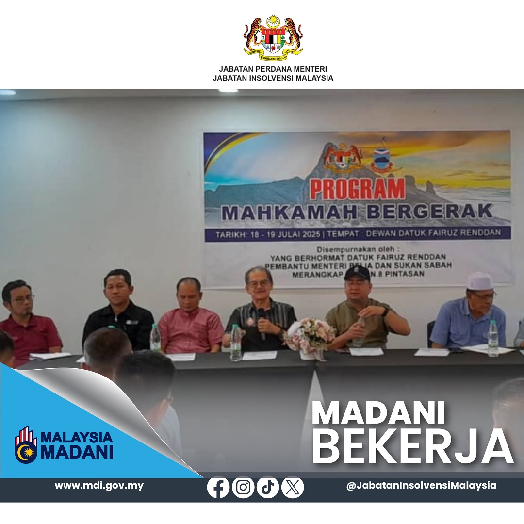Jabatan Insolvensi Malaysia (MdI) Cawangan Kota Kinabalu, Sabah telah dijemput menyampaikan taklimat ringkas kebankrapan sempena Program Mahkamah Bergerak anjuran Mahkamah Negeri Sabah.
