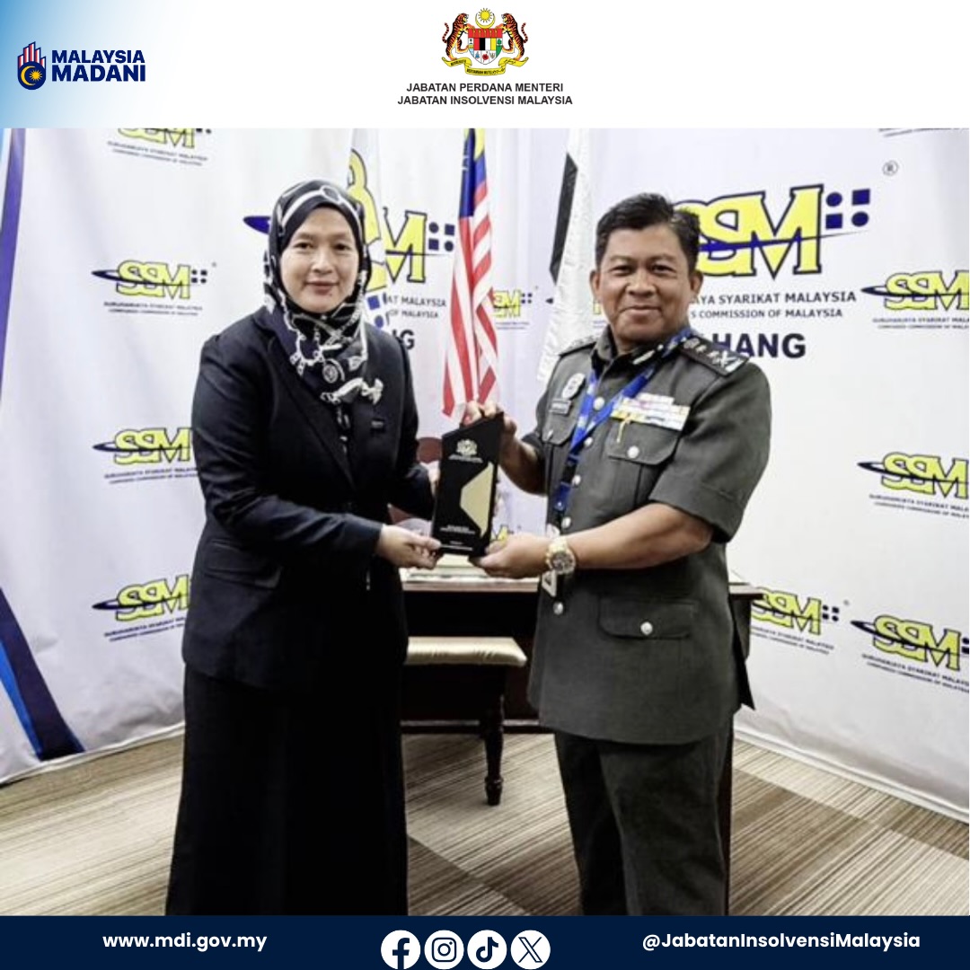 Jabatan Insolvensi Malaysia (MdI) Cawangan Kuantan, Pahang telah mengadakan sesi kunjungan hormat ke Suruhanjaya Syarikat Malaysia (SSM) Negeri Pahang bagi memperkukuh hubungan kerjasama strategik antara kedua-dua agensi pada 19 Januari 2026.