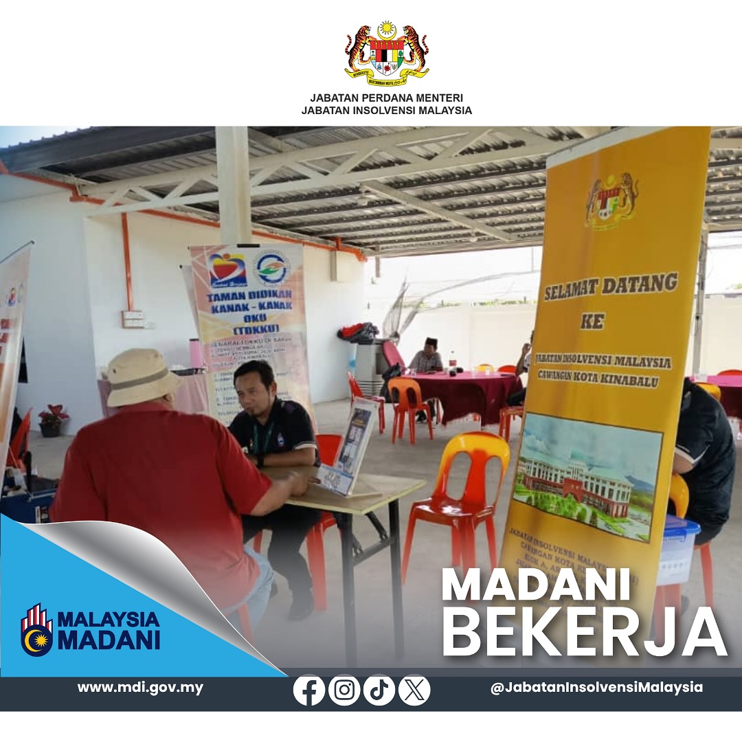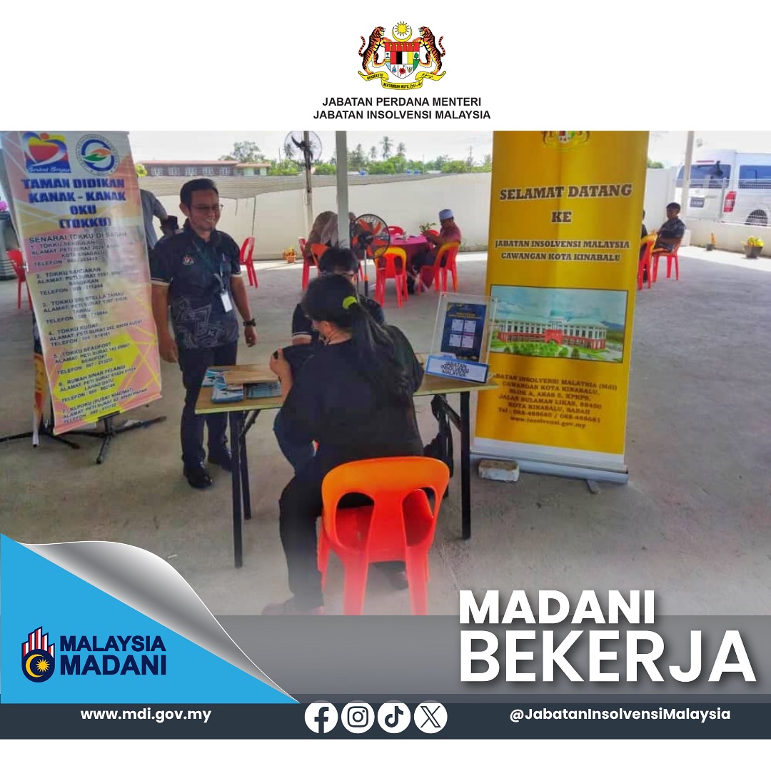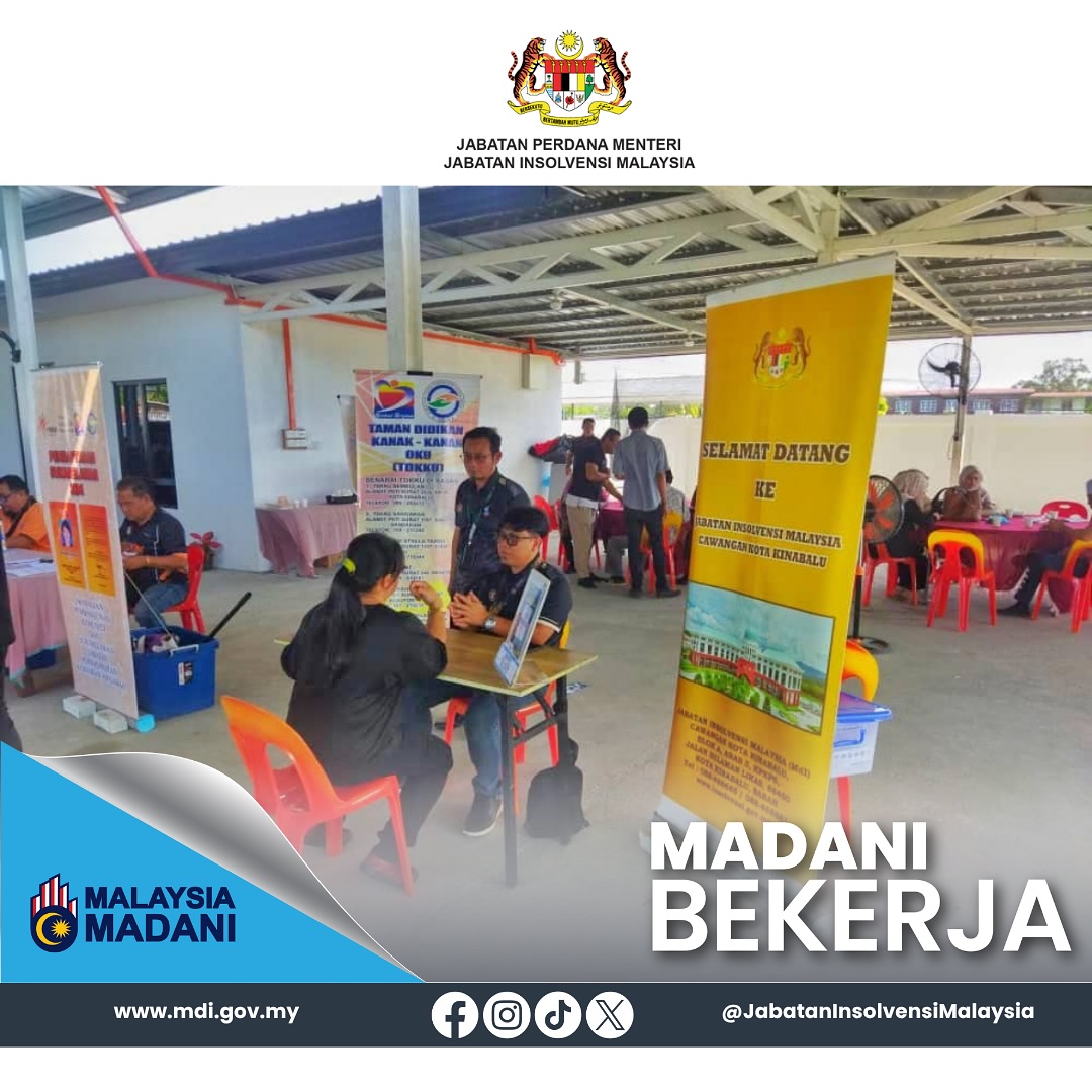 Jabatan Insolvensi Malaysia (MdI) Cawangan Kota Kinabalu, Sabah telah menyertai Program Mahkamah Bergerak anjuran Mahkamah Negeri Sabah dengan membuka reruai pameran bertempat di Dewan Terbuka Kg. Taun Gusi, Kota Belud pada 19 Julai 2025.