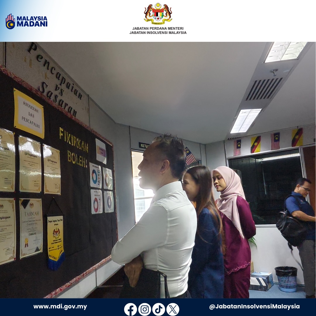 Turut hadir dalam lawatan tersebut ialah Tuan Mohamad Hafisol bin Yusoff, Pengarah Insolvensi, Bahagian Dasar dan Perundangan, serta Puan Zulaaikha binti Mohd Apandi, Pegawai Khas kepada Ketua Pengarah Insolvensi.