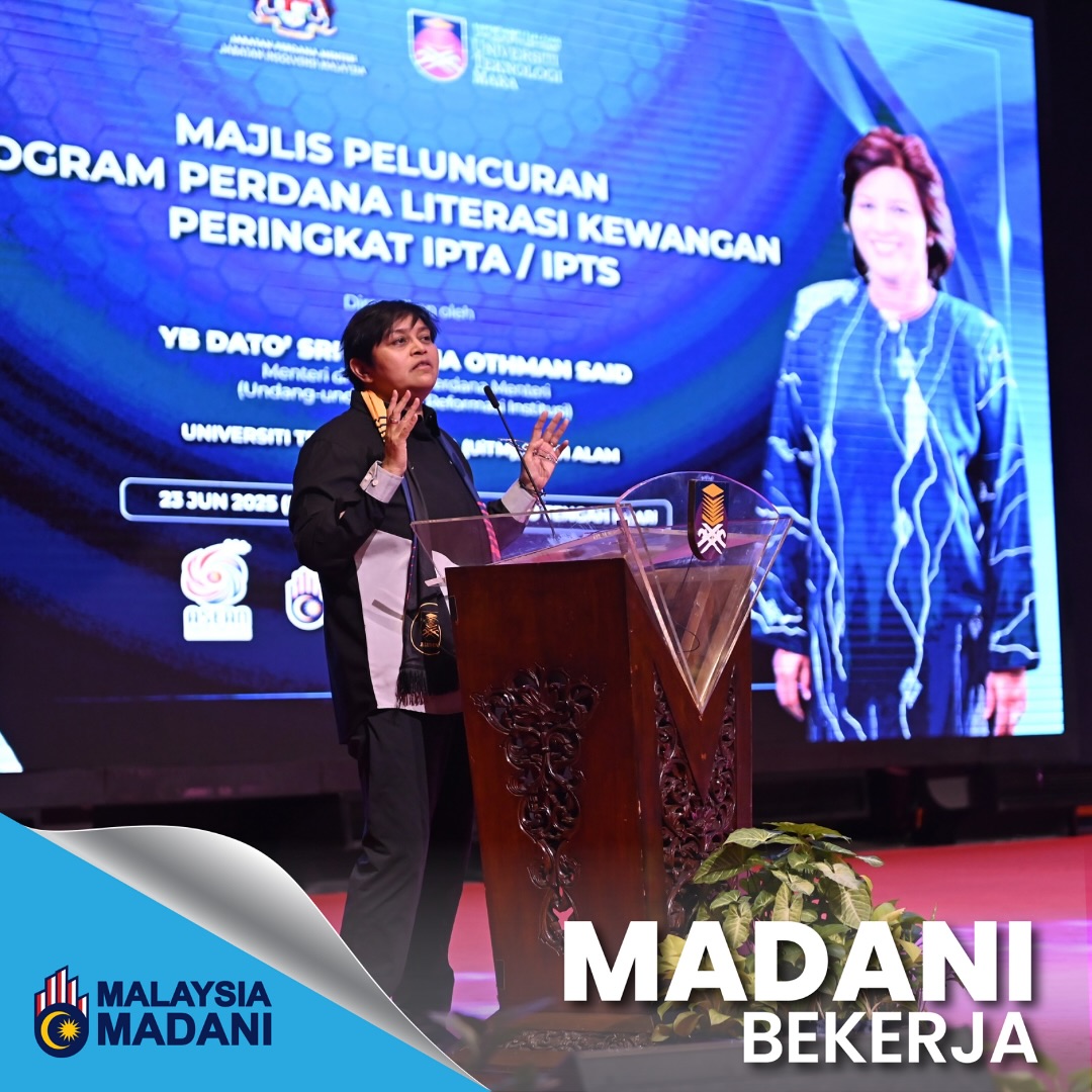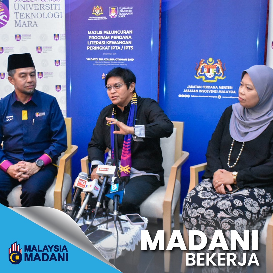 Majlis Peluncuran Program Perdana Literasi Kewangan Peringkat IPTA/IPTS telah berlangsung dengan jayanya hari ini di Universiti Teknologi MARA (UiTM), Shah Alam. Majlis telah disempurnakan oleh YB Dato’ Sri Azalina Othman Said, Menteri di Jabatan Perdana Menteri (Undang-Undang dan Reformasi Institusi).