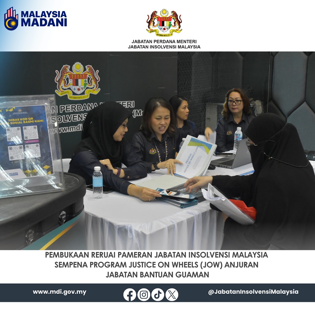 Jabatan Insolvensi Malaysia (MdI) Cawangan Kota Kinabalu, Sabah telah membuka reruai perkhidmatan sempena Program Justice on Wheels (JOW) yang dianjurkan oleh Jabatan Bantuan Guaman (JBG) 26 Ogos 2025.