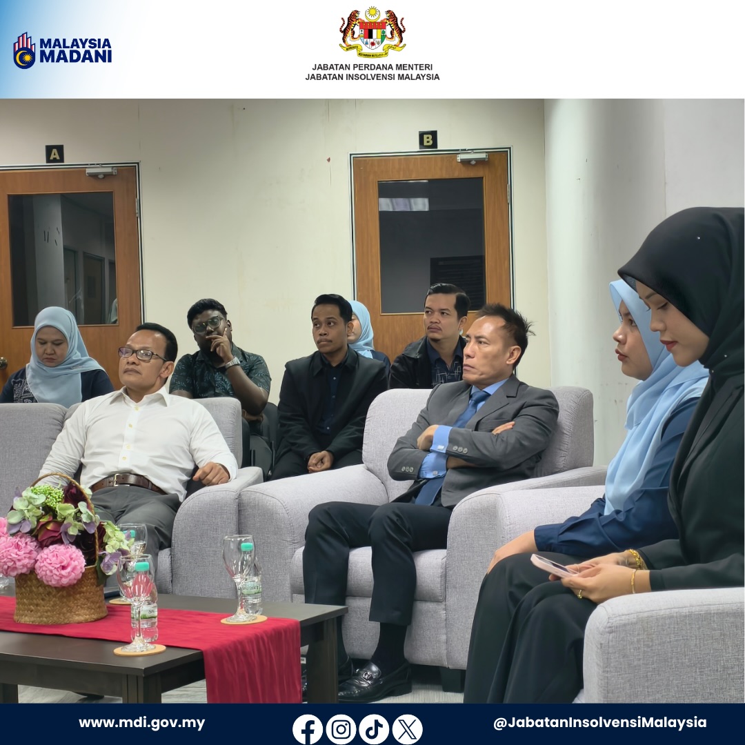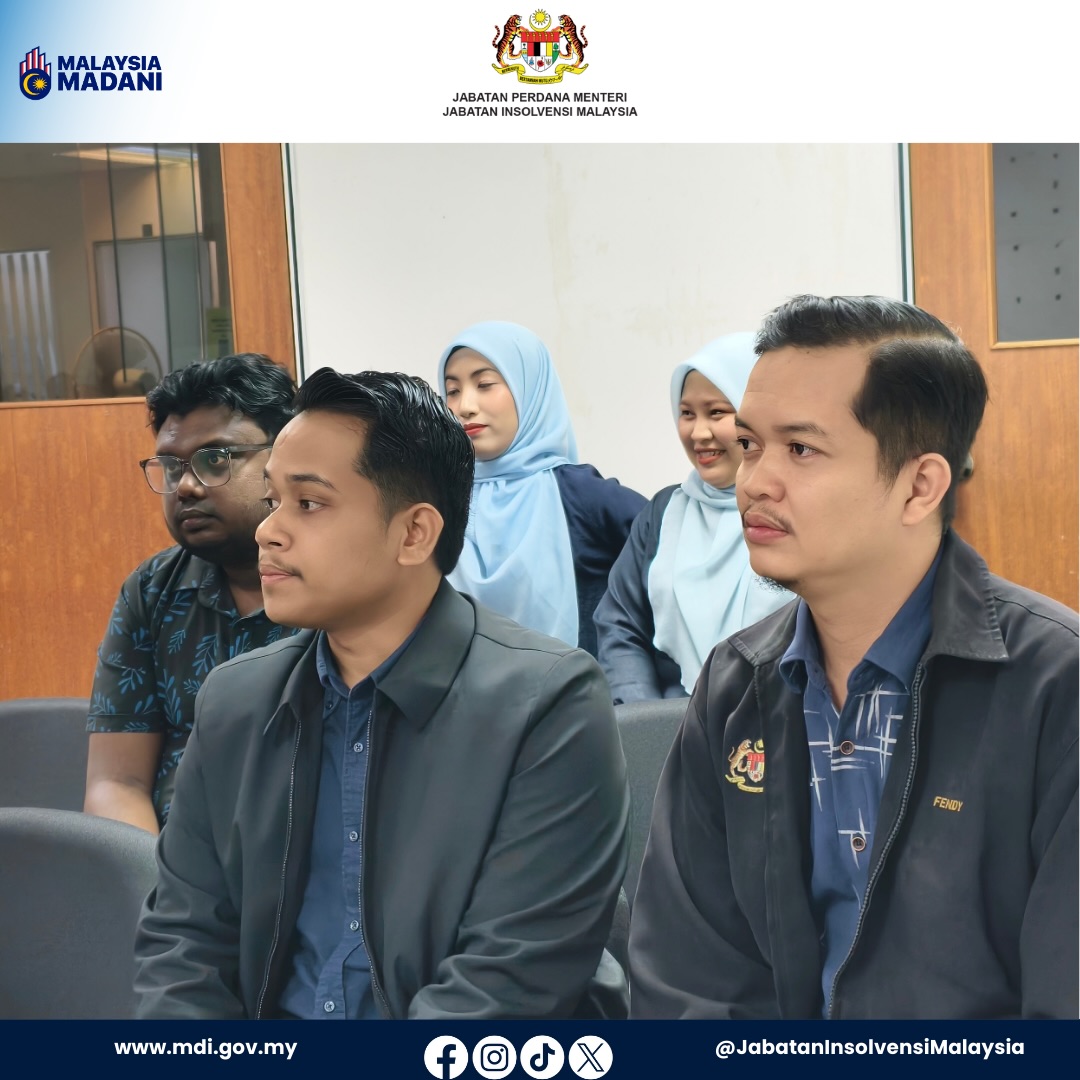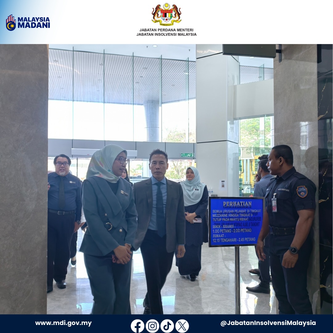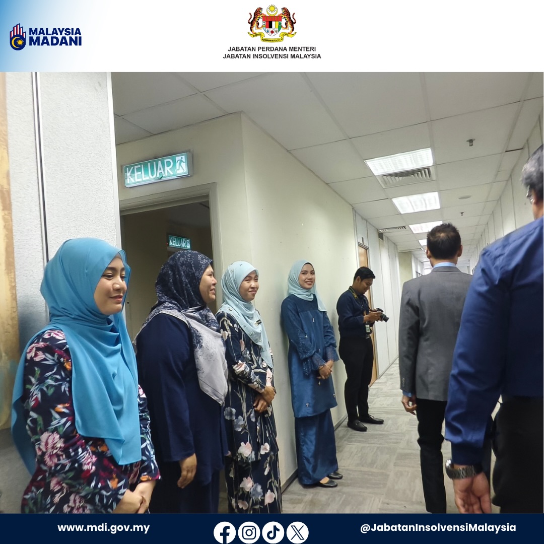 Turut hadir dalam lawatan tersebut ialah Tuan Mohamad Hafisol bin Yusoff, Pengarah Insolvensi, Bahagian Dasar dan Perundangan, serta Puan Zulaaikha binti Mohd Apandi, Pegawai Khas kepada Ketua Pengarah Insolvensi.