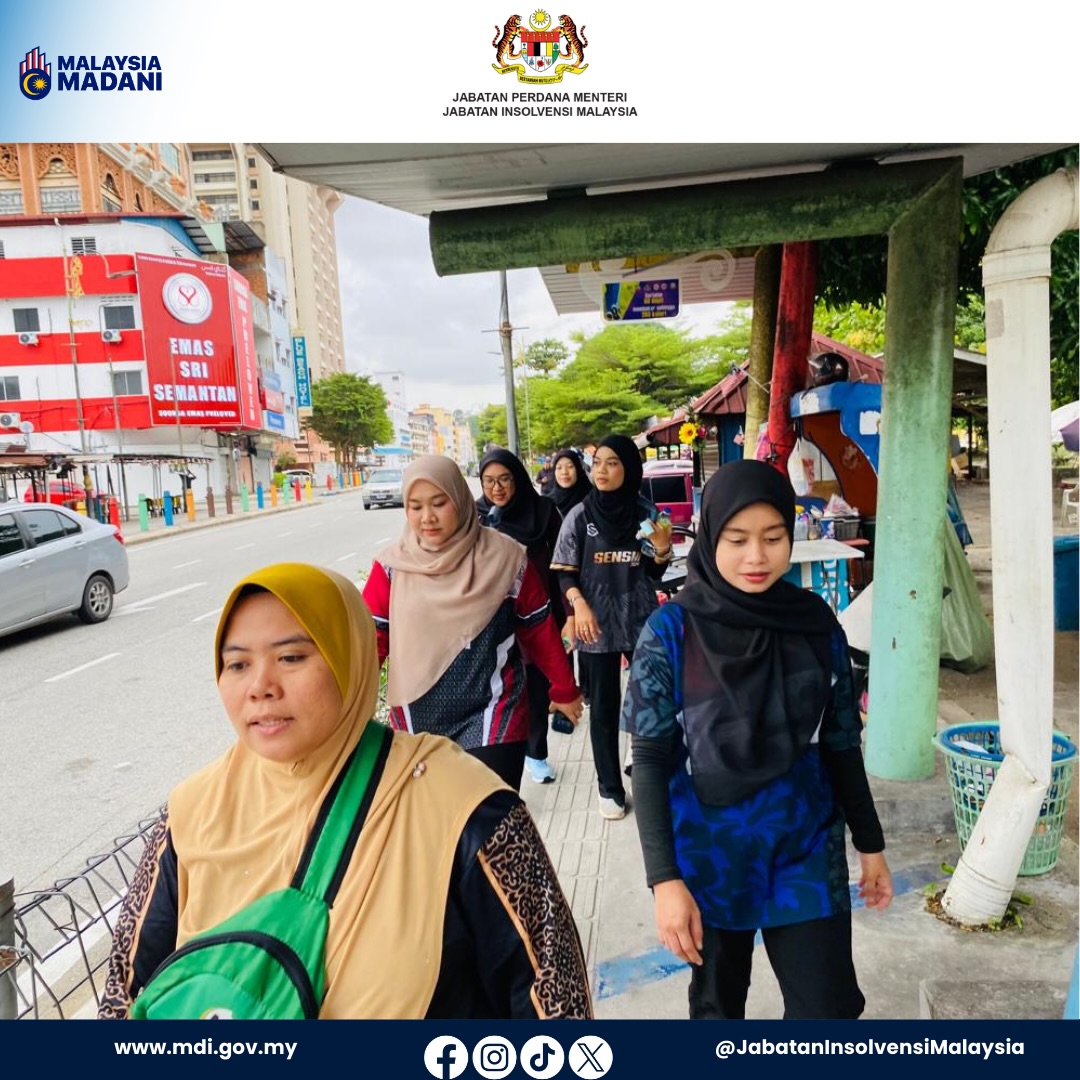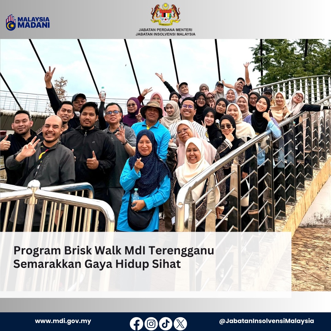 Jabatan Insolvensi Malaysia (MdI) Negeri Terengganu telah menganjurkan Program Brisk Walk ke Pasar Kedai Payang pada 29 Januari 2026 (Khamis) dengan penyertaan seramai 47 orang kakitangan.