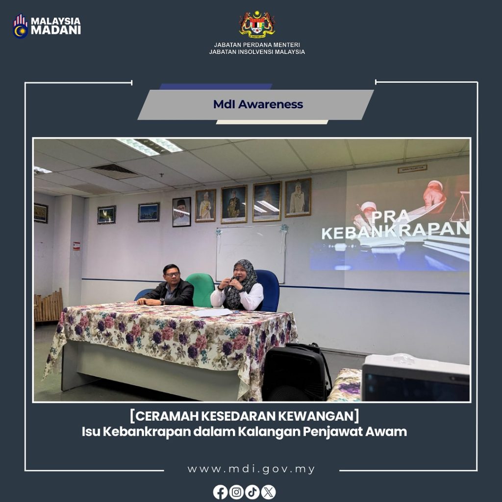 Galeri Foto Photo Gallery CERAMAH ISU KEBANKRAPAN DALAM KALANGAN PENJAWAT AWAM 21 Mac 2025 CERAMAH ISU KEBANKRAPAN DALAM KALANGAN PENJAWAT AWAMJabatan Insolvensi Malaysia( MdI) Cawangan Temerloh dengan kerjasama Pejabat Ukur Daerah Pahang Tengah – JUPEM (Temerloh) telah menganjurkan ceramah bertajuk “𝐈𝐬𝐮 𝐊𝐞𝐛𝐚𝐧𝐤𝐫𝐚𝐩𝐚𝐧 𝐝𝐚𝐥𝐚𝐦 𝐤𝐚𝐥𝐚𝐧𝐠𝐚𝐧 𝐏𝐞𝐧𝐣𝐚𝐰𝐚𝐭 𝐀𝐰𝐚𝐦” pada 21 Mac 2025 (Jumaat) bertempat di premis JUPEM […]