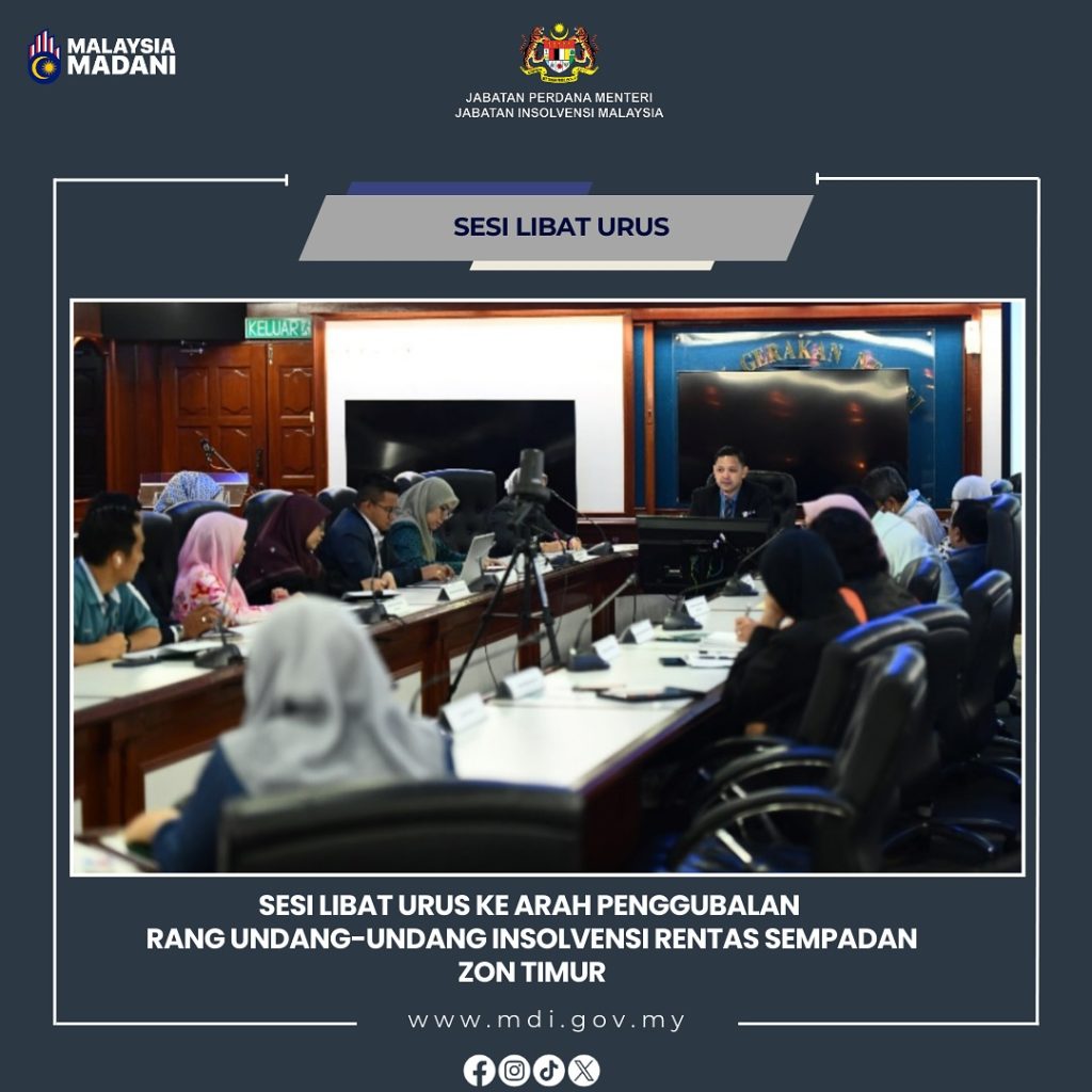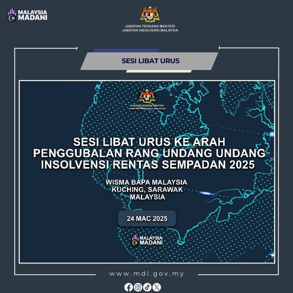 Galeri Foto Photo Gallery SESI LIBAT URUS KE ARAH PENGGUBALAN RANG UNDANG-UNDANG INSOLVENSI RENTAS SEMPADAN ZON TIMUR 19 Mac 2025 📍 Wisma Sri Pahang, Kuantan, PahangJabatan Insolvensi Malaysia (MdI) selaku Sekretariat 𝘔𝘢𝘭𝘢𝘺𝘴𝘪𝘢 𝘊𝘳𝘰𝘴𝘴 𝘉𝘰𝘳𝘥𝘦𝘳 𝘐𝘯𝘴𝘰𝘭𝘷𝘦𝘯𝘤𝘺 𝘙𝘦𝘧𝘰𝘳𝘮 𝘞𝘰𝘳𝘬𝘪𝘯𝘨 𝘊𝘰𝘮𝘮𝘪𝘵𝘵𝘦𝘦 telah menganjurkan Sesi Libat Urus Zon Timur : Ke Arah Penggubalan Rang Undang-Undang Insolvensi Rentas Sempadan. Sesi […]